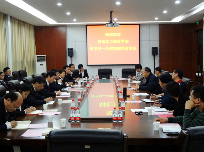5月8日下午,河南化工职业学院一行16人在党委副书记蒋清民、副院长赵玉奇带领下,到我院考察交流。院长王爱群、副院长彭志宏出席会议并讲话。有关单位负责人参加交流会。