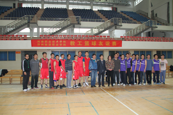 4月19日下午,院工会主席邵芙蓉、副主席赵燕军和教练肖泽民率领学院篮球队应邀到郑州旅游职业学院参加篮球友谊赛,并受到了该院党政领导、院工会和篮球协会的热情欢迎。