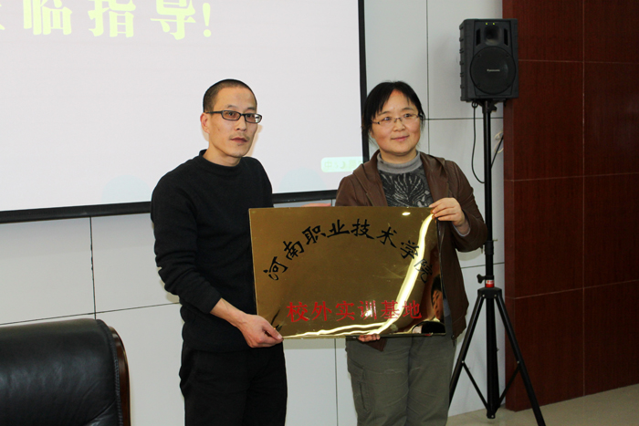 会上,肖珑副院长首先代表学院对来自省美术家协会、省包装协会和高校及企业的专家的到来表示欢迎,并希望与会专家能在我院的多媒体技术专业建设上提出宝贵意见。会议宣读了新一届的专业建设指导委员会名单,并为各位专家颁发了证书。同时,学院与到会的郑州金秋彩印有限责任公司、河南新文化文化传播公司签订了校企合作协议,并进行了“河南职业技术学院校外实训基地”授牌。