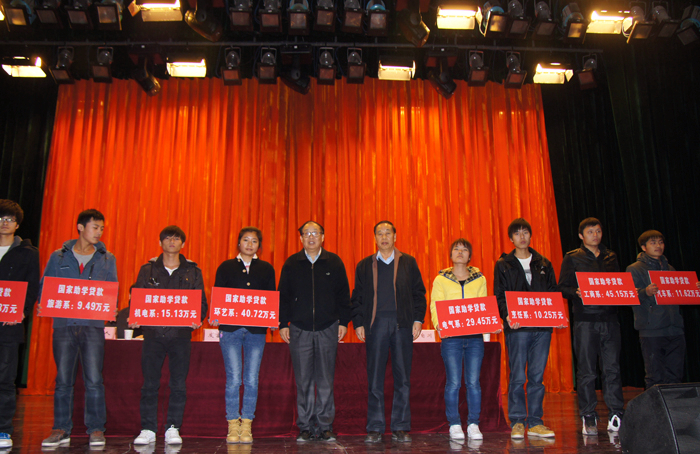 会上,郭自川副书记代表学院首先向今年受助的464名同学表示祝贺。他介绍了我院近年有关国家助学贷款的工作情况,强调了国家助学贷款的重要性。他勉励同学们,身处逆境,志存高远,把今天的贫穷当作是明天成功的财富,并希望同学们用一颗感恩的心珍惜来之不易的学习机会,正视困难,奋发成才,以优异的学习成绩回报学校,回报国家。随后,王爱群院长和郭自川副书记亲自为受助的各系(院)学生代表发放了国家助学贷款。