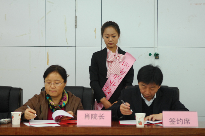 仪式上,郑州信誉汽车销售修配服务有限公司董事长赵中岭代表企业发言,对当前新形势下校企合作的现实意义和双赢效益表示赞同。毕业生代表王志也作了发言,感谢学院搭建这样的平台,使学生在实习过程中培养就业素质,提高竞争能力。随后,肖珑副院长代表学院与10家单位分别签订了《校企合作共建校外实习(就业)基地协议书》,王爱群院长代表学院为签约单位授牌。