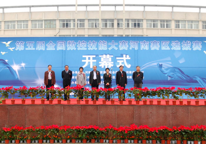 10月26日上午,第五届全国数控技能大赛河南赛区选拔决赛在我院拉开帷幕。省人力资源和社会保障厅副厅长郑子健、省总工会副主席马露霞、省工业和信息化厅纪检组长刘东霞和省教育厅高教处调研员张大策等领导出席了开幕式。开幕式由省人力资源和社会保障厅职业能力建设处处长栾雷主持。