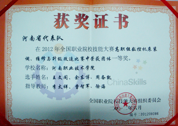 6月26日至27日,在天津机电职业技术学院举行的2012年全国职业院校技能大赛“数控机床装调、维修与升级改造”赛项中,我院选派的学生代表队和教师代表队,凭借扎实的功底、娴熟的技能、良好的素质和团结协作精神,从来自国内的55个参赛队中脱颖而出,分别荣获了本次赛项学生组和教师组一等奖的优异成绩,三位指导老师获得“优秀指导教师奖”。这是继我院参赛学生在获得汽车营销项目团体一等奖后,又一次获得的两个团体一等奖,展示了数控设备应用与维护专业技能,再次为学院争得了荣誉。