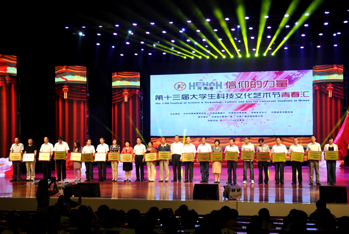 6月19日晚,河南省第十三届大学生科技文化艺术节青春汇——信仰的力量暨闭幕式颁奖晚会在省人民大会堂隆重举行。我院荣获本届大学生科技文化艺术节“优秀组织奖”,院党委书记王长钦出席晚会并上台领奖。
