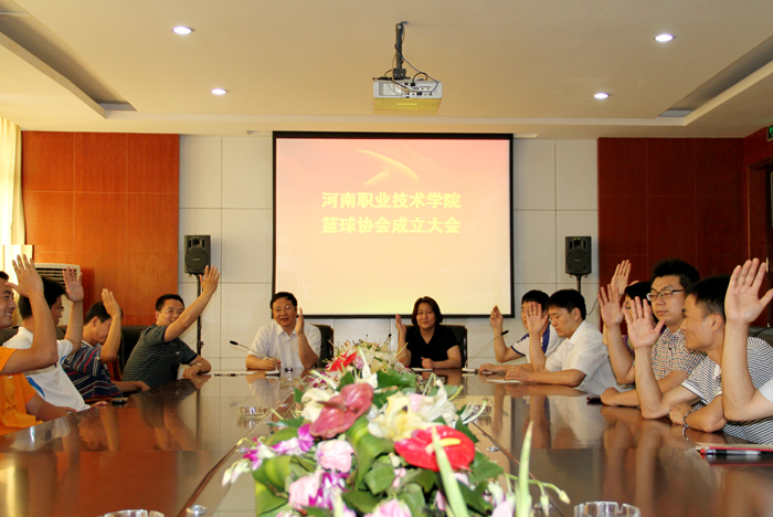 会上,邵芙蓉主席宣读了院工会委员会关于同意成立河南职业技术学院教工篮球协会的通知,并对协会的成立表示祝贺。大会审议通过了协会章程和协会会长、副会长、秘书长等人选。