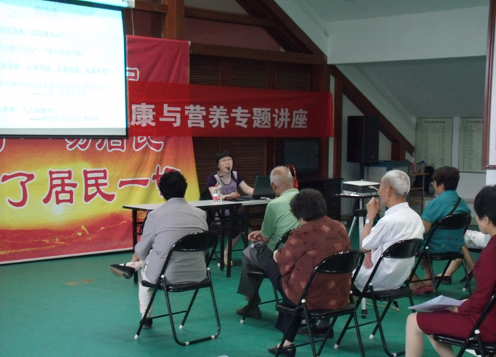 该系杨霞副教授作为主讲老师,向居民朋友着重讲解了怎样营养科学合理的搭配膳食、如何做到健康餐饮等问题,并就营养健康的一些基本常识问题与居民朋友们展开了沟通和交流。根据该社区常住居民生活情况,该系党总支组织学生利用专业知识,有针对性地对居民日常的生活饮食习惯拟定了合理方案。该社区居民积极参与,对此次进社区讲座活动给予了高度评价,希望能够经常性开展此类活动。