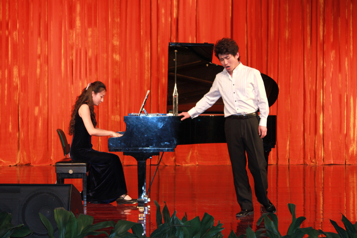 音乐会上,祁伟耿教授的一首《欢乐颂》独唱表演拉开了音乐交流演出的序幕。随后,她和她的学生深情演唱了贝里尼的《痛苦的弗雪》《尽情欢乐》、理查•斯特劳斯的《万灵节》《奉献》以及普契尼的歌剧《蝴蝶夫人》选段。交流演出在普契尼的歌剧《艺术家的生涯》选段中圆满结束。演出结束后,双方师生进行了深入的专业交流。
