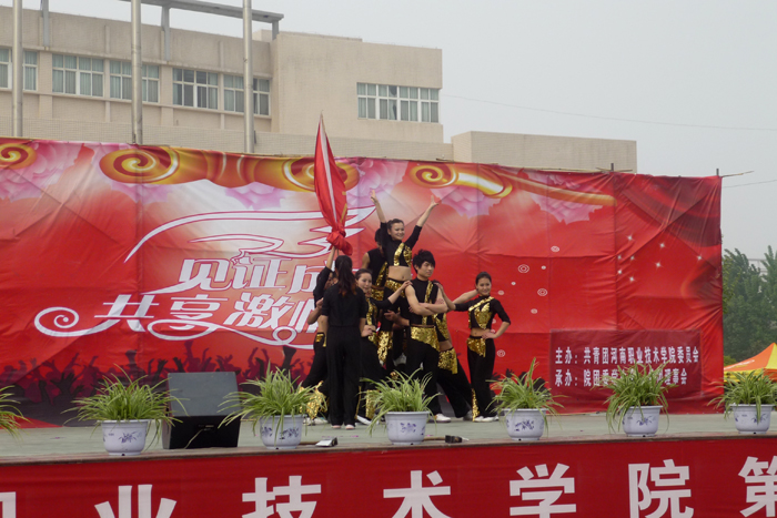 4月19日下午,由院团委主办,学生会、社团理事会承办的我院第一届健美操街舞大赛圆满落幕。院团委书记杨华、新乡职业技术学院团委副书记李德武亲临大赛现场,并邀请音乐学院和基础部的5位老师担当大赛评委。
