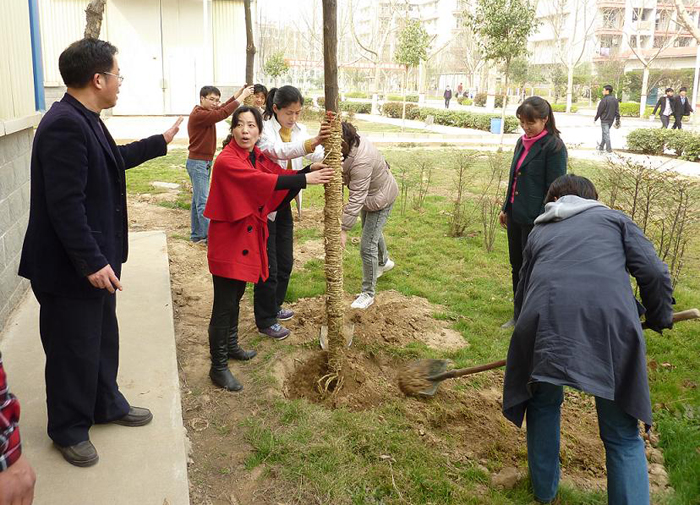 王洪波老师首先介绍了所植树木的特点以及栽种的技术要领,大家有序领取树苗和劳动工具,按布置好的植树点依次进行植树。现场呈现出一片繁忙景象,大家按照种苗、培土、踏实的植树工序认真劳动,经过两个小时的共同协作,顺利完成了种植任务,提高了图书馆全体馆员的环保意识和主人翁意识,为学院增添了一篇亮丽的绿色。