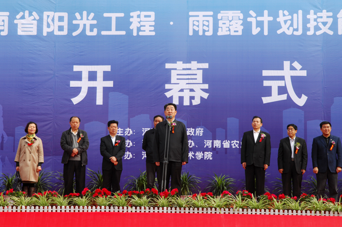 3月30日上午,河南省“阳光工程•雨露计划”职业技能大赛决赛开幕式在我院举行。出席开幕式的嘉宾有刘满仓副省长,省农业厅、省扶贫办、省财政厅、省人力资源和社会保障厅、省教育厅、省民政厅、省残联等单位领导。各省辖市农业局、扶贫办负责同志和700多名参赛选手及18支代表队部分培训学员共计1500多人参加了开幕式。