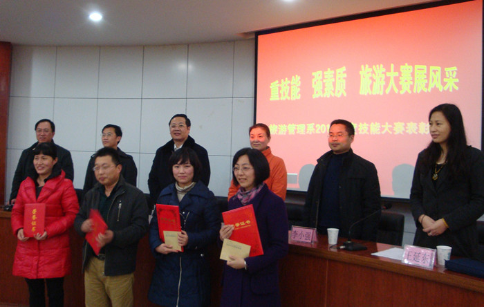 3月22日下午,旅游管理系在行政楼圆形会议室召开了2011年度旅游技能大赛表彰大会。副院长彭志宏、教务处处长周宗杰、招就处处长张琳、合作办学处副处长李小强出席会议。该系全体教师、获奖选手及100余名学生代表参加了会议。会议由该系副主任李岚主持。