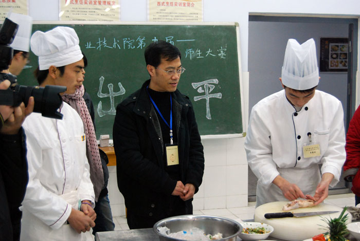 学院第九届“师生技能比武大赛”烹饪食品系赛区学生组决赛于2011年12月3日圆满结束。院长王爱群、副院长肖珑和教务处处长周宗杰等领导到烹饪食品系赛区巡视指导,对烹饪食品系的赛事组织工作表示满意。王院长针对烹饪食品类学生的技能培养等问题提出了指导性意见。
