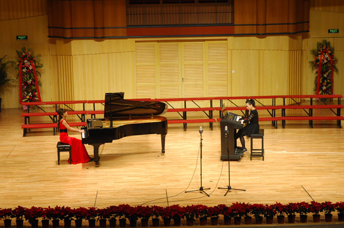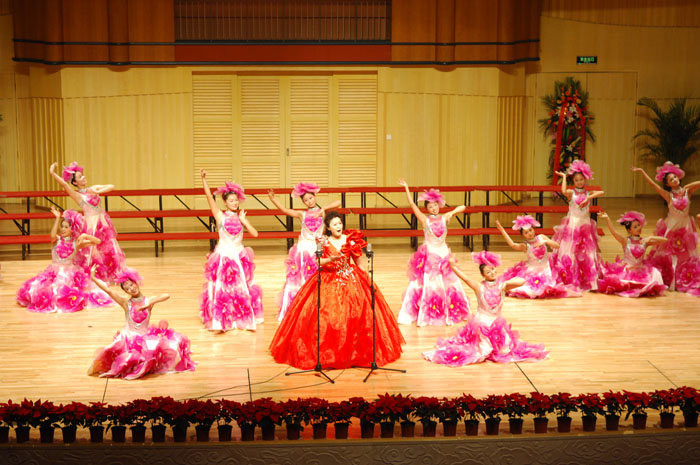 音乐演唱会采用讲座与演唱相结合的形式,使观众从中追寻红色歌曲的历史足迹,感受红色歌曲的精神力量。雷红薇教授从革命战争时期、社会主义建设时期和改革开放30年的经典歌曲三方面入手,详细讲解了中国红歌产生、发展和繁荣的时代背景,既有理性思辨又有感性互动,既深入浅出又通俗易懂。三个章节之间用红歌贯穿,既彼此独立又浑然天成,让在场观众了解红歌的同时也领略了艺术的魅力。音乐学院的师生们不但演唱了《长城谣》、《八月桂花遍地开》等经典歌曲,还演奏了钢琴双排键合奏《黄河》等革命战争年代的经典作品和《英雄赞歌》、《毛主席来到咱农庄》等社会主义建设时期经典歌曲,还演唱了《春天的故事》、《红旗飘飘》、《江山》等改革开放时期的经典歌曲,在现场掀起了一个个高潮。最后,整场讲座及音乐演唱会在歌伴舞《报答》、《节日欢歌》中圆满结束。