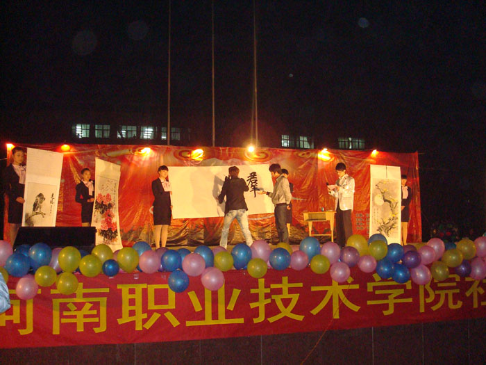 充满古典美的古筝弹奏,展示中华传统文化的书法、武术表演,令人叫绝的拉面技术演示,将晚会气氛一次次推向高潮,掌声欢呼声迭起。演员和观众的热情与执著驱散了初冬的寒意。持续了两个多小时的晚会始终洋溢着蓬勃向上的青春活力,展现了学院文化素质教育的成果。晚会在歌曲“相亲相爱一家人”中圆满结束,也寓示了我院各个学生社团永远都是一家人,相亲相爱共同成长,共建和谐的校园文化。