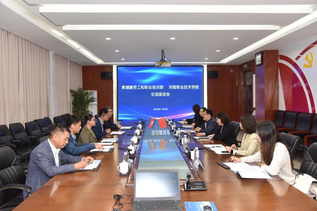 11月4日下午,柬埔寨劳工和职业培训部副国务秘书Him Southearoth一行到河南职业技术学院访问,就拟开展合作事宜进行交流。校长夏新颜、副校长任枫轩出席座谈会。国际合作交流处、音乐学院和继续教育与培训中心相关负责人参会。任枫轩主持会议。