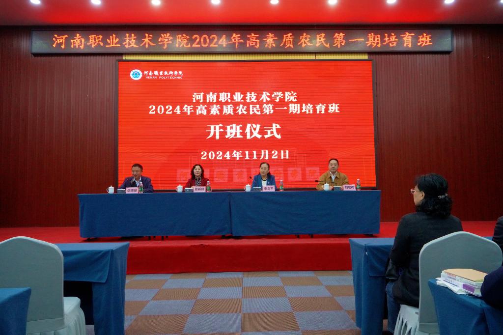 11月2日上午,河南职业技术学院2024年高素质农民第一期培育班在河南省现代农业研究开发基地开班,全省各地140余名学员参加培育班。河南职业技术学院校长夏新颜、中原出版传媒集团副总经理李文平、中原农民出版社社长刘宏伟出席开班仪式。河南职业技术学院副校长李玉峰主持开班仪式。