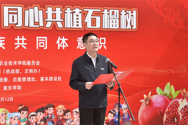 3月12日是全国第47个植树节,当天,河南职业技术学院举行了“中华民族一家亲,同心共植石榴树”活动。校党委书记厉励出席活动,为学生讲授铸牢中华民族共同体意识思政课,并为“民族团结石榴林”揭牌。校党委委员、副校长任枫轩,党政办公室、党委宣传部、党委学生工作部、校团委、后勤管理处、基本建设处和各二级学院相关负责人,以及120余名各民族师生代表参加活动。校党委副书记、工会主席田华主持活动。