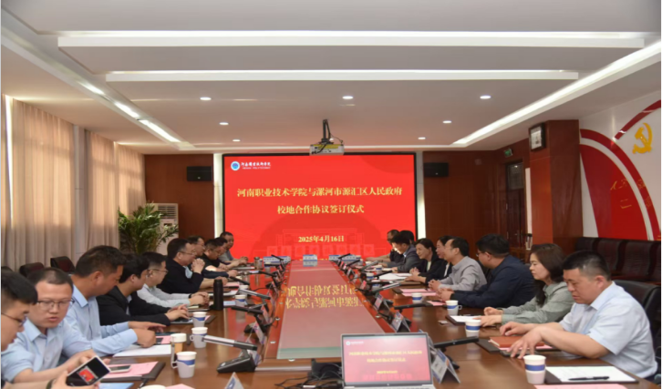 4月16日下午,河南职业技术学院与漯河市源汇区人民政府校地合作框架协议签约仪式在学校举行。校党委副书记、工会主席田华,党委委员、副校长朱永宽,漯河市源汇区委常委、组织部部长王仕梁,漯河市源汇区政府党组成员、副区长郭峰出席签约仪式。校地双方相关部门负责同志参加签约活动。签约仪式由校党委委员、组织部部长杨华主持。