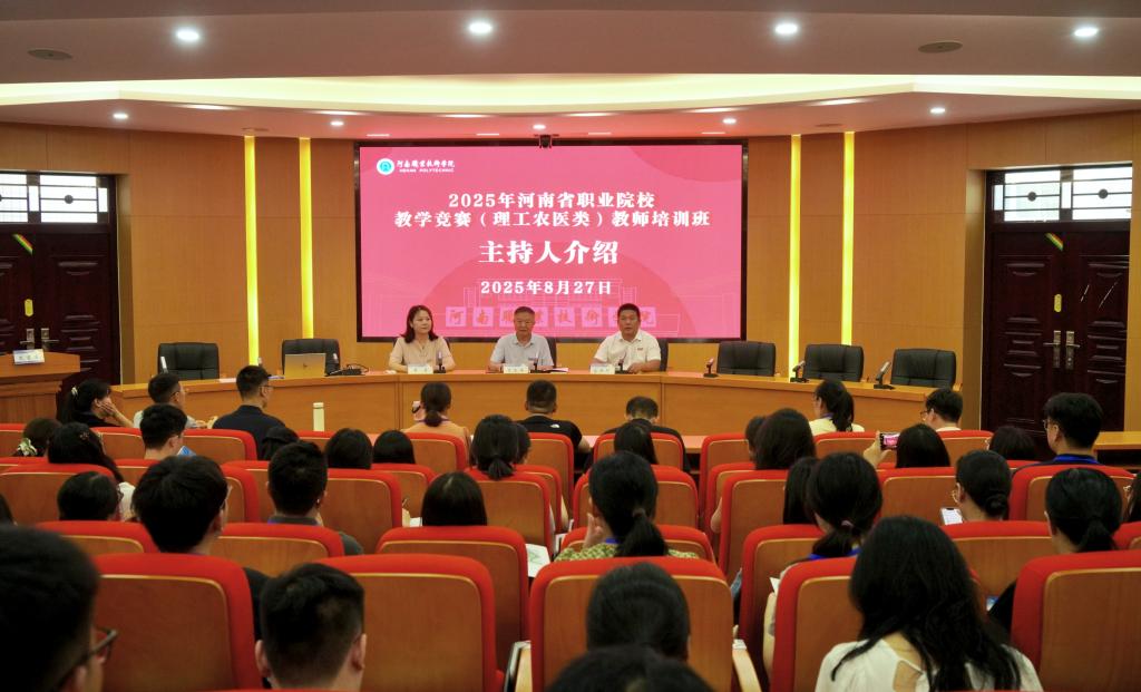 8月27日上午,2025年河南省职业院校教学竞赛(理工农医类)教师培训班开班仪式在学校勤业楼239会议室举行。100多名来自全省职业院校的省赛获奖教师齐聚一堂,开启为期三天的专项培训。校党委委员、副校长李玉峰出席仪式并致辞。