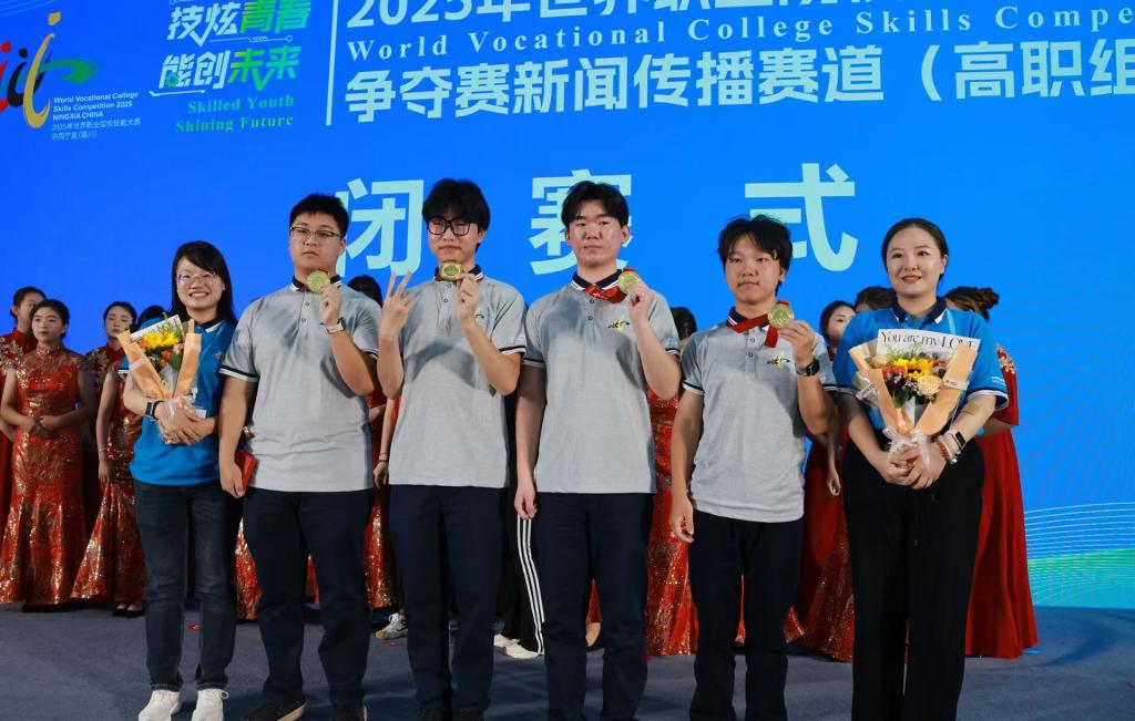 9月8日,2025年世界职业院校技能大赛总决赛争夺赛新闻传播赛道(高职组)比赛在宁夏银川落幕。河南职业技术学院参赛团队与来自全国32个赛区、107所高职院校的122支代表队同台竞技,凭借扎实的专业技能、严谨的职业素养和突出的创新能力,在众多强队中脱颖而出,勇夺金奖。
