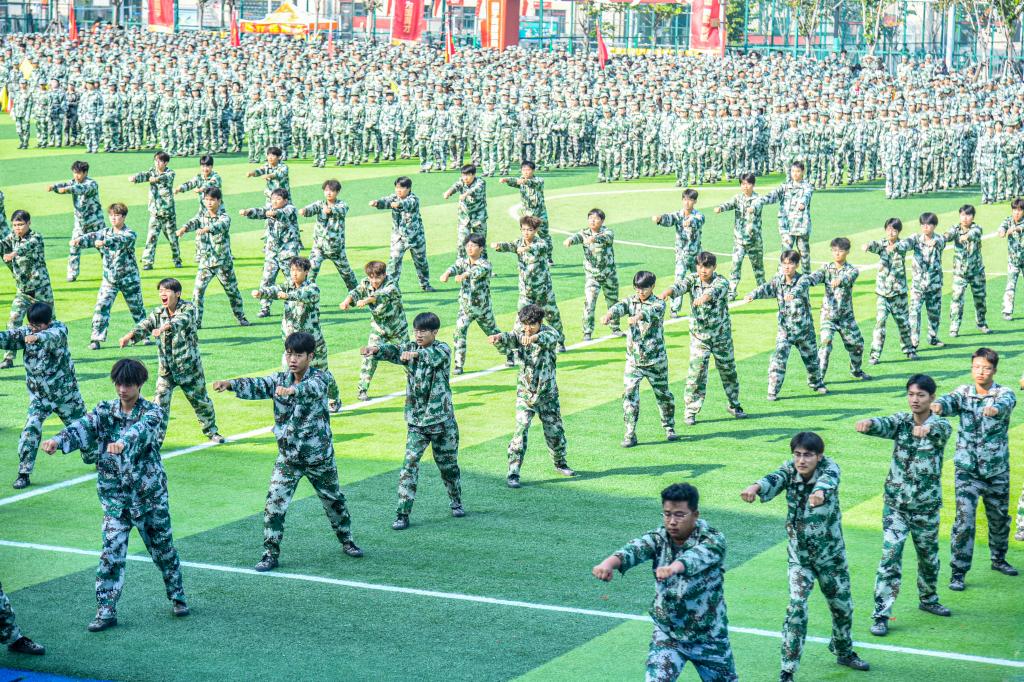 军训成果汇演分为分列式、数字方队、男子擒敌拳、女子匕首操和旗语操等五个部分。12个二级学院方队和男女劈枪方队阵容协调统一、口号嘹亮有力,他们依次走过主席台接受检阅。2400人的数字合唱方阵以身为笔,以行为墨,在军训场上精准呈现出壮丽的数字画卷和震撼人心的军歌声响;铁骨铮铮贯长松的男子擒敌拳;巾帼锋芒胜寒霜的女子匕首操;旗风猎猎作雷声的千人旗语操,多方位展示了2025级新生团结、拼搏、奋进的良好风貌,赢得全校师生的阵阵掌声。