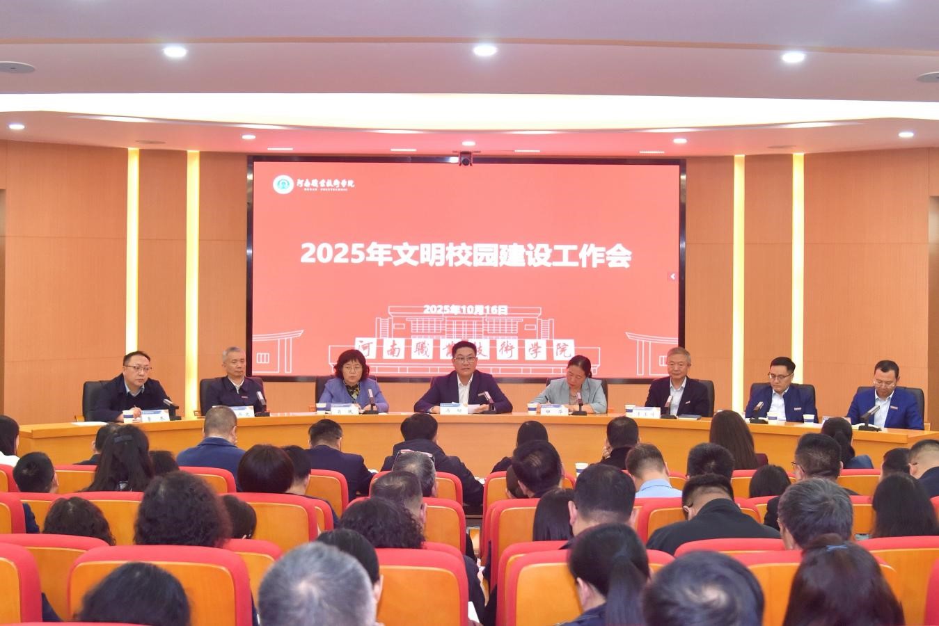 10月16日下午,学校召开2025年文明校园建设工作会,深入学习贯彻习近平总书记关于精神文明建设的重要论述,全面落实省委教育工委、省教育厅有关工作要求,总结成绩,剖析不足,明确任务,动员全校上下统一思想、凝聚共识,奋力推动学校文明校园建设再上新台阶。校党委书记厉励出席会议并讲话。全体在校校领导、中层干部及各单位精神文明专干参会。会议由校党委委员、副校长李玉峰主持。
