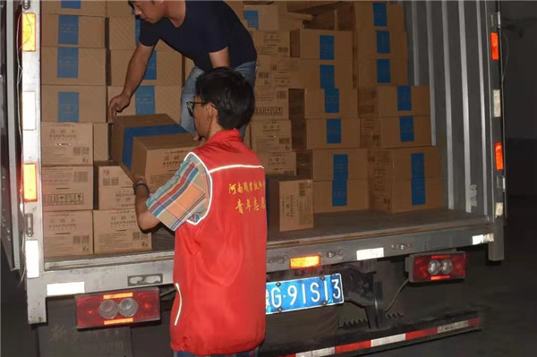 7月25日,团省委紧急征集志愿者,一批爱心物资要运送焦作武陟受灾一线,得知情况后,李晨泽二话不说,积极报名参与,当天下午在团省委门前协助装车后,暮色已近,他和司机两人迎着晚霞带着5吨的水、方便面、面包出发了。因多处路况受损,高速难以顺畅通行,司机几经转弯绕道,于当晚11点到达第一个捐赠点嘉应观乡,“路上很颠簸,又困又饿又累,那么晚了村干部和村民还在村口等我们,真的很想哭,又感觉很自豪。”
