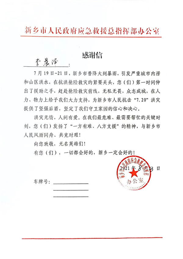送完第一个点来不及休整,李晨泽和司机又往其他乡镇赶去,待圪垱店镇、谢旗营镇、乔庙镇等捐赠点送完,天边已经泛白。李晨泽说,这次线下送物资行动对他触动很大,一路上,他看到被水浸泡倒塌的房屋,被水淹没的农田,被水冲毁的道路,还有穿着各色制服的救援团队,心酸又感动。“真实感受到,大灾面前有大爱,不是一句空话,是实实在在的行动。”