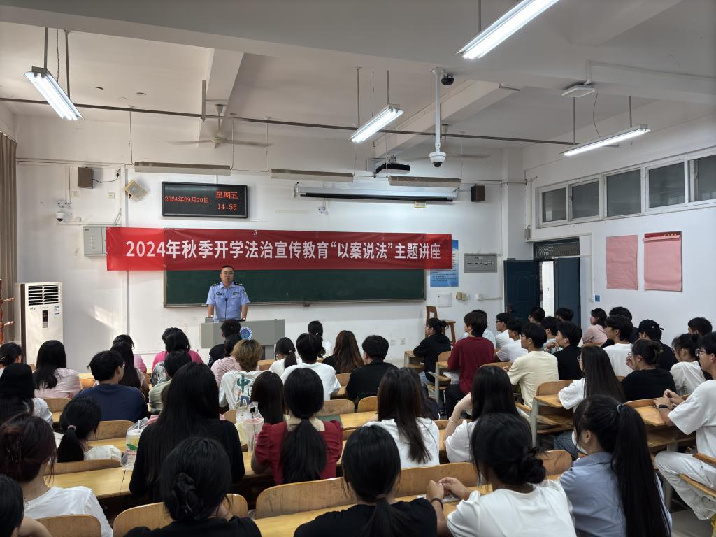9月20日下午,马克思主义学院联合校团委开展秋季法治宣传教育活动,邀请河南省郑州未成年犯管教所警官魏煊为学生代表80余人开展“以案说法”主题讲座,推进法治宣传教育进校园、进课堂、进头脑。