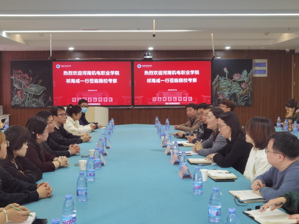 1月17日上午,河南机电职业学院设计学院党总支书记祁海成、院长刘夏滢一行20余人,来学校数字创意与设计学院参观交流学习。数创学院党总支书记、院长徐海燕及学院领导班子成员、教研室主任、优秀教师代表参加座谈交流会。