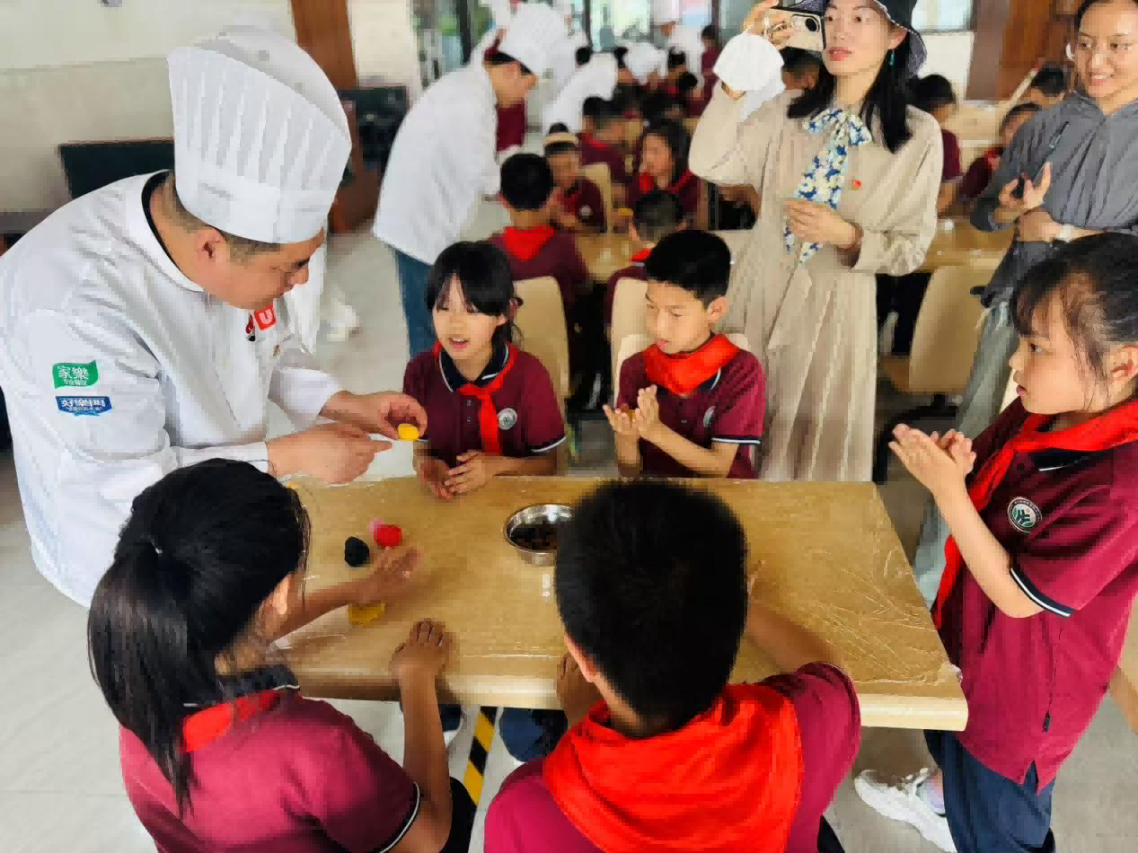活动现场,党员教师与烹饪面点专业学生通过图文讲解、实物展示等形式,向小学生们介绍了非物质文化遗产“花馍”的历史渊源与文化内涵。从祭祀礼仪到节庆装饰,从民俗寓意到制作技艺,孩子们在聆听中感受到千年面塑技艺的独特魅力。在动手实践中,孩子们更是体会到了传统面点的匠心之美,进一步培养了劳动热情与创造力。