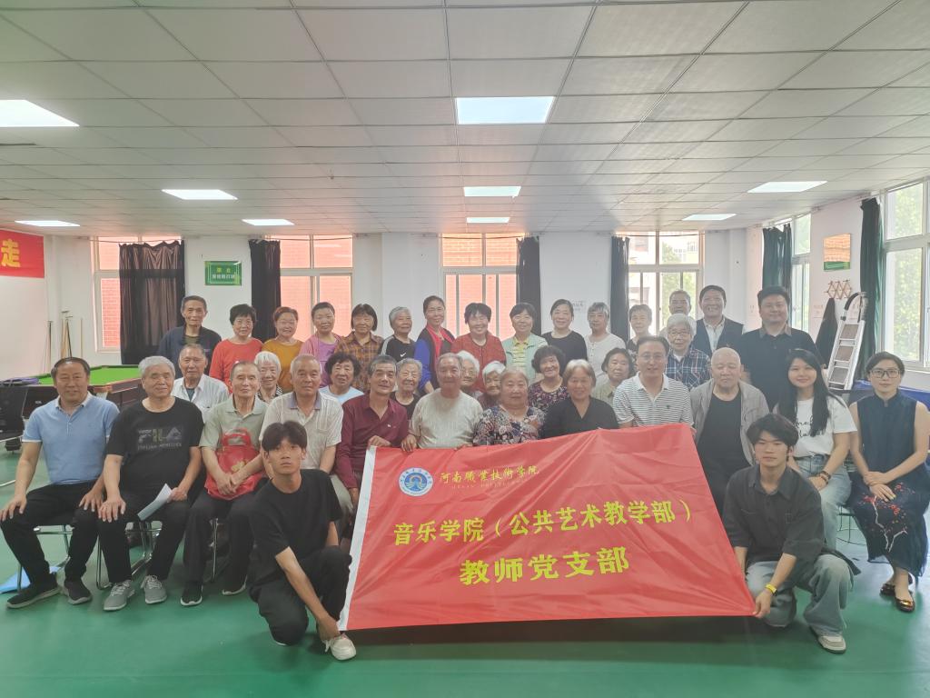 5月15日下午,学校音乐学院携手校工会党支部,在退休教职工活动室三楼组织开展了一场别开生面的“学雷锋文明实践我行动”之“党建+音乐”志愿服务活动。校工会主席赵军华、音乐学院教师支委志愿服务团队及部分退休职工共50余人参加,活动现场气氛热烈,笑语欢声不断。