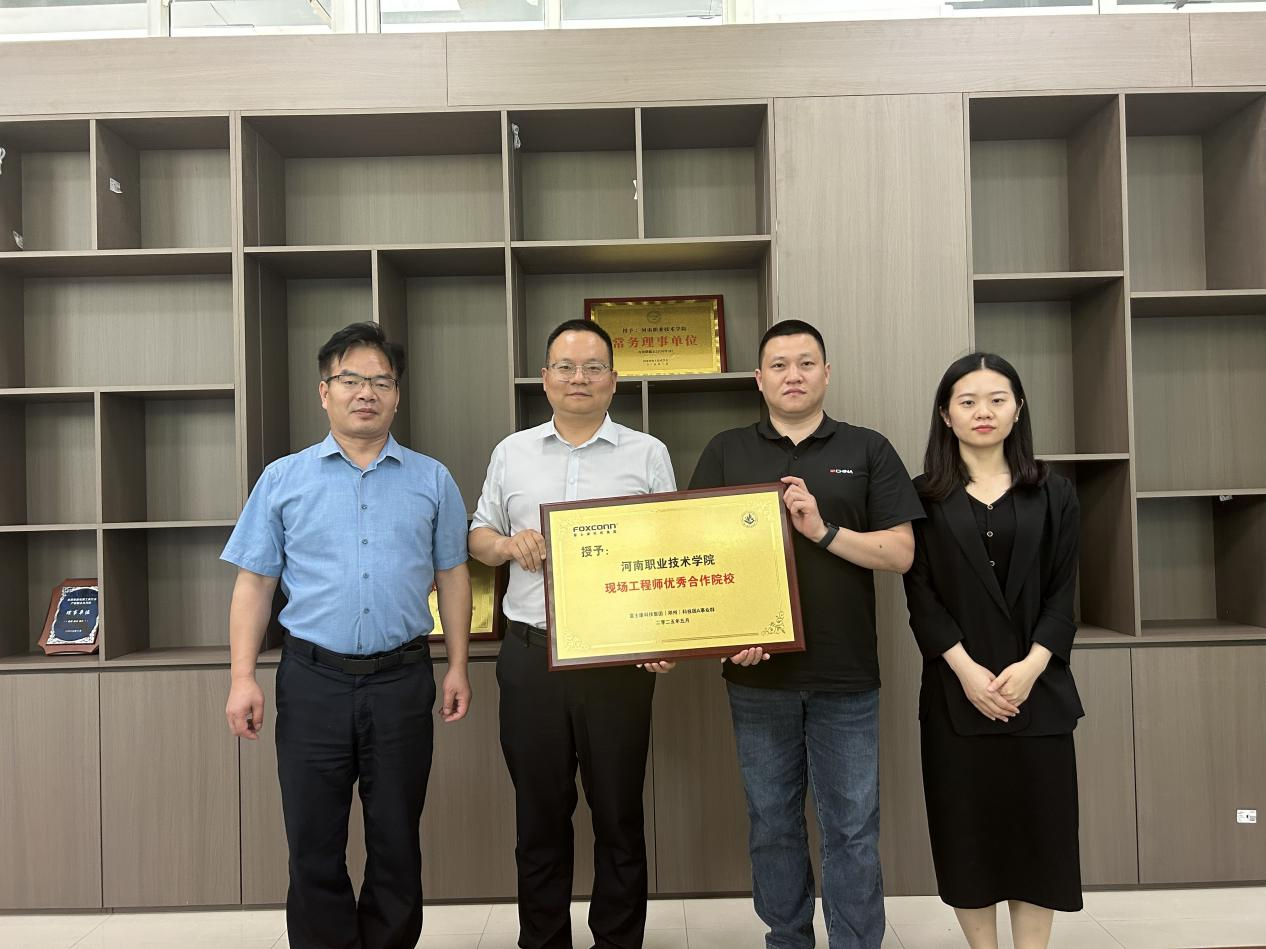5月20日上午,学校控制工程学院被富士康科技集团A事业群授予“现场工程师优秀合作院校”荣誉称号。授牌仪式在智行楼305会议室举行,双方代表共同见证这一重要时刻。