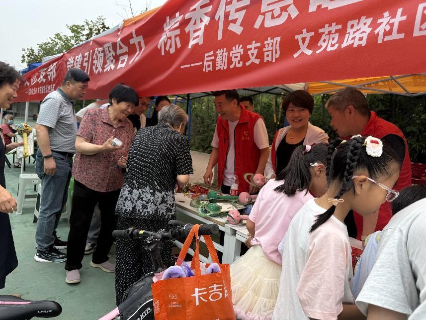 活动巧妙融合了“情暖六一”与“粽情端午”两大主题元素,精心策划了一系列丰富多彩的环节。在端午文化小课堂上,志愿者们为孩子们讲述了端午节的由来与习俗,传承中华优秀传统文化;现场还组织了佩戴五色线、发放艾草香囊等活动,让居民们感受传统节日的浓厚氛围。此外,套圈游戏、口腔义诊、血压测量、儿童涂鸦绘画以及儿童跳蚤市场等活动也吸引了众多居民参与,现场欢声笑语不断,邻里情谊在互动中不断升温。