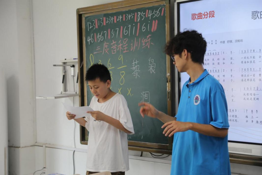 声乐241班学生屈浩博,普通话与歌声里,看见乡野童眸的星火燎原。五天暑期支教似一首短歌。第一天教普通话,孩子们带乡音、怯于开口,从“词语接龙”拍手游戏,到抿嘴笑到抢着举手,普通话“四”“十”发音渐准,拘谨变雀跃,教唱歌更热闹。最后一天,学生拉着他坐石阶,用不太标准却认真的普通话唱完每一首他教过的歌。五天很短,他说他虽然没记住每个孩子名字;但又很长,能看见孩子眼中自信,听见混着乡音却更响亮的歌声。原来陪伴力量不在时长,而在彼此眼中的光。
