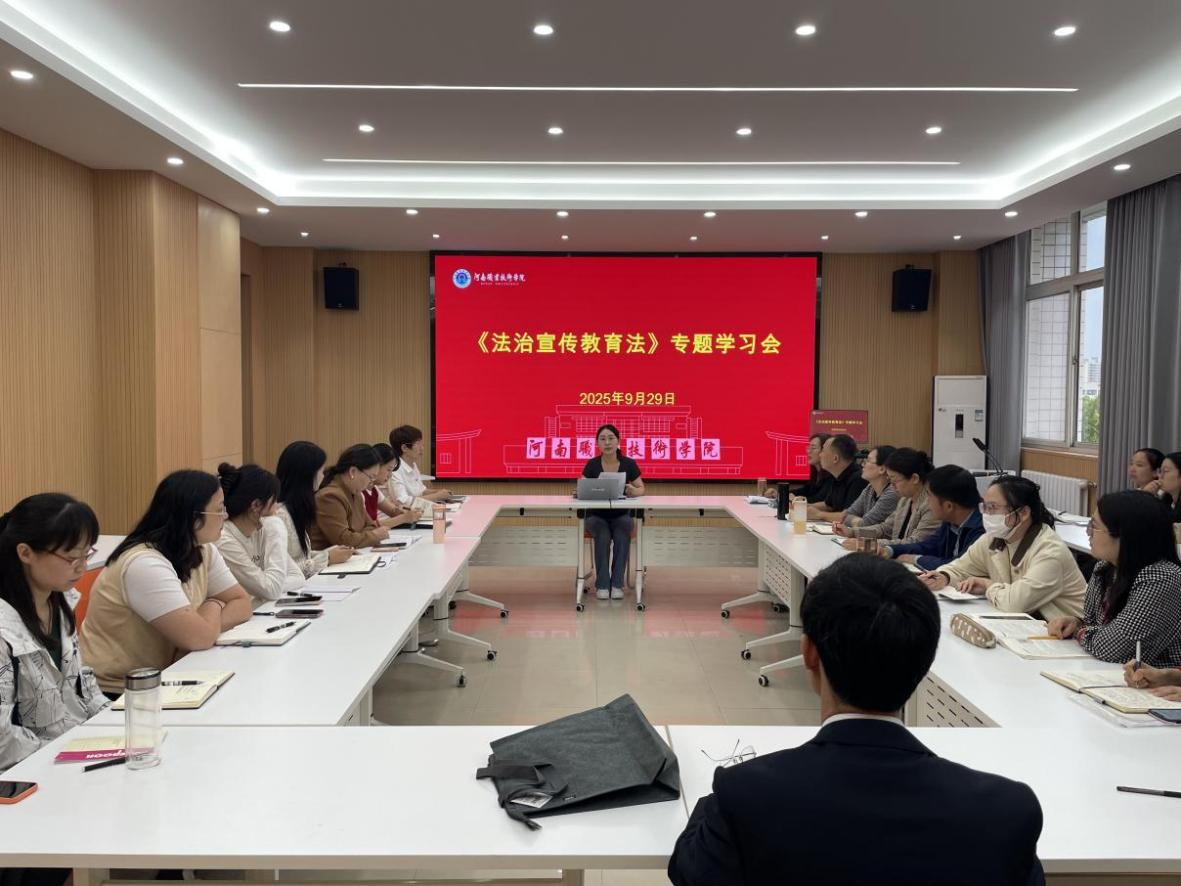 9月29日下午,学校马克思主义学院在勤业楼510会议室召开了《法治宣传教育法》专题学习会,深入学习宣传和贯彻实施《中华人民共和国法治宣传教育法》,全面提升思政课教师法治素养,营造尊法学法守法用法的良好氛围。会议由副院长胡海涵主持,全体思政课教师参会。