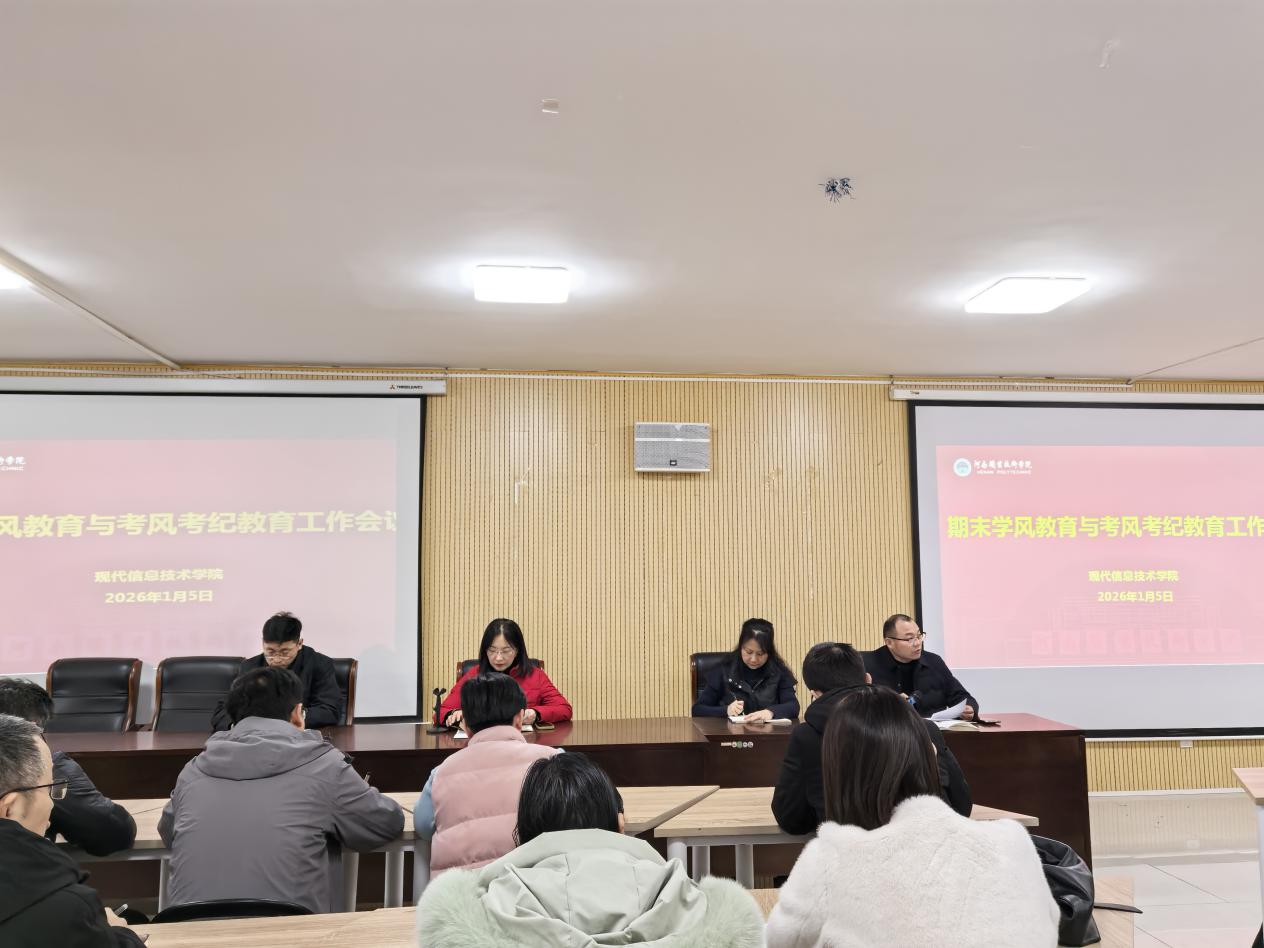 此次会议既明确了考务工作的刚性要求,压实了监考履职责任,更细化了期末考试组织实施的关键举措,为保障期末考试平稳有序、公平公正开展筑牢了制度屏障。(供稿:王俊平;审稿:董俊磊)