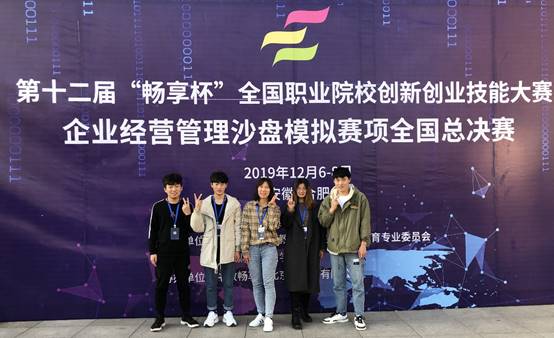 12月6日至8日,第十二届“畅享杯”全国职业院校创新创业技能大赛企业经营管理沙盘模拟赛项全国总决赛在合肥财经职业学院举行,共有来自全国106所职业院校的126支队伍选派的504名参赛选手同台竞技。激烈角逐,我校商学院市场营销专业谢卫星、朱宏恩、孙佳良和刘露丝等四位同学组成的参赛队在赛场上奋勇拼搏、力战群雄,以优异成绩荣获该赛项团体“一等奖”。赵丽英和李明慧两位教师被评为“优秀指导教师”。