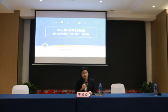 肖珑对参加此次培训的代表们表示欢迎和感谢,并介绍了研修班前期筹备情况和整体安排,再次强调了此次培训的背景和意义,充分肯定了继续教育学院的创新工作精神。李桂贞致辞并作了题为“深入推进专创融合,助力学校‘双高’发展”的开班第一课。她系统介绍了我校双创工作的典型经验、创新创业教育工作取得的成绩及打造双创升级版的思路和想法,她强调下一步我院将推进创新创业教育升级、平台升级、服务升级、扶持升级,全力打造双创升级版。她希望通过此次培训,大家能够互相切磋、交流观念,一起促进创新创业工作再上新台阶,为打造“双创”升级版贡献力量。