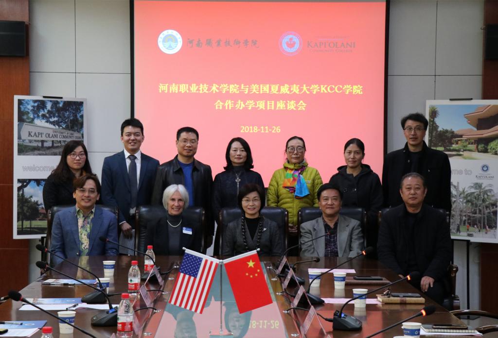 会上,李桂贞院长代表学校向Pagotto校长一行的到来表示欢迎,并就我校有关情况进行了介绍。她说,KCC项目是我校首个中外合作办学项目,项目运行以来,已经成为学校对外合作办学项目的典范。希望Pagotto校长一行此次来访,多提宝贵意见,帮助学校不断提升合作办学项目建设水平,促进双方在更高层次方面的合作不断深入。随后,KCC学院Pagotto校长介绍了美国夏威夷大学KCC学院的办学历史和教学理念,以及合作办学的经验,希望通过双方的合作,能够培养一批国际化的高素质技术技能型人才。