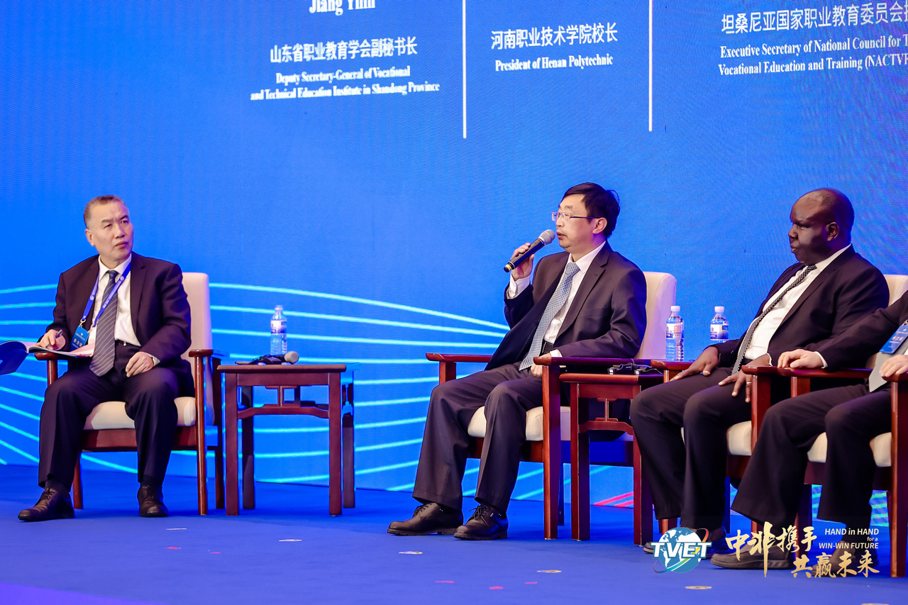 梅乐堂出席了大会的重要环节——中国职业院校校长圆桌论坛并围绕“标准融通”主题发表了讲话,介绍了我校在国际标准融通方面的经验和做法。结合在第二批“坦桑尼亚国家职业标准开发项目”中的经验,提供了四条有效路径:建立“行、企、校”职业标准协同开发团队;从实际需求出发,提升标准的适应性;技文融合,搭建交流桥梁;动态反馈,保证职教标准输出成效。