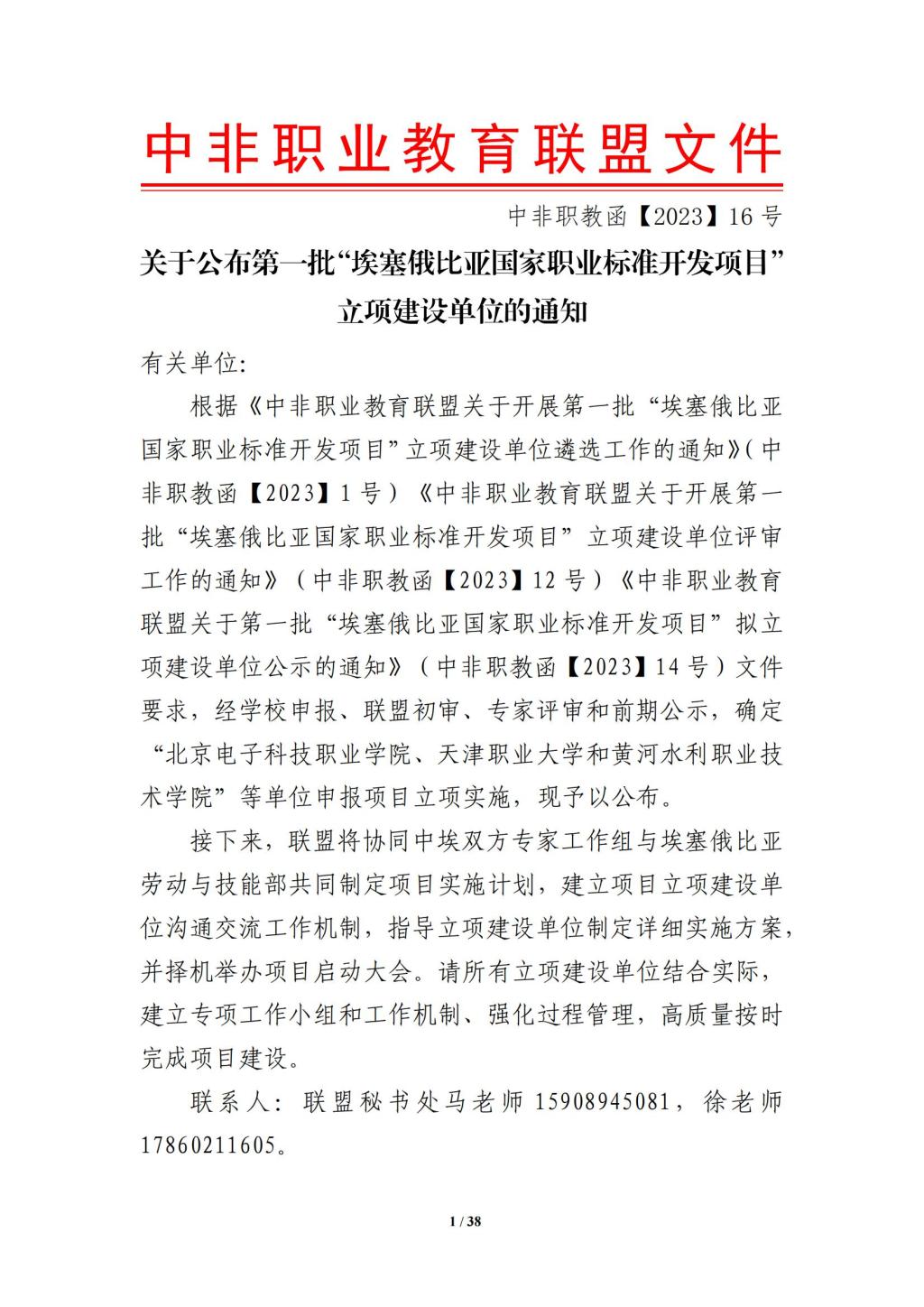 4月23日,中非职业教育联盟公布第一批“埃塞俄比亚国家职业标准开发项目”立项建设单位名单(中非职教函【2023】16号),河南职业技术学院成功获批4个职业技能岗位标准开发项目。我校将独立完成“合作社会计与审计技术员/工程师V级”职业标准建设,牵头完成“车辆服务与维修技术员/工程师III级”、“园艺作物种植技术员/工程师IV级”两个职业标准建设,参与完成“旅游服务技术员I级”职业标准建设。