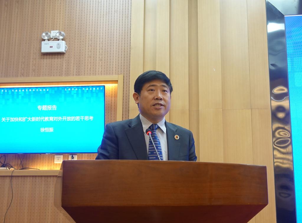 省教育厅二级巡视员、对外合作处处长徐恒振现场致辞,并指出2020年新型冠状疫情的蔓延使国际交流工作受到很大冲击,在国际交流合作存在很多不确定性的情况下,协会作为我省唯一涉外省级社团,今后的发展应该从提升站位、找准方位、立足本位三个方面继续做好服务教育行政、服务会员单位工作,促进我省加快和扩大教育对外工作步伐。