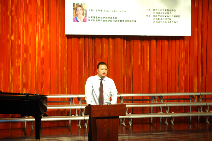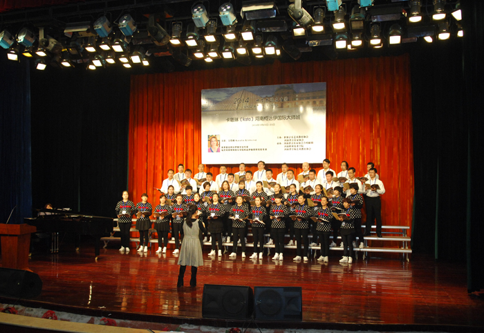 11月23日上午,由世界音乐艺术教育协会、河南省音乐家协会联合主办,河南省音乐家协会合唱联盟、河南省教育厅省学校艺术教育协会和我院共同承办的“世界大师在中国——2014 卡塔琳(Kata)河南柯达伊国际大师班”开幕式在我院音乐厅隆重开幕。