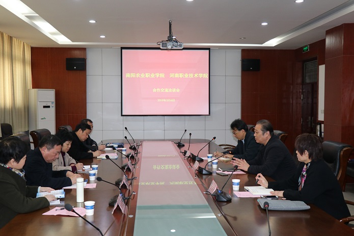 3月6日上午,南阳农业职业学院马质璞副校长一行5人到访我校,就国际交流合作和产教融合进行友好交流。学校副院长王皓和机电工程学院、合作交流处相关负责人与来访客人进行了座谈。