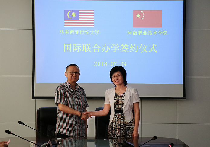 7月9日下午,马来西亚世纪大学校董,世纪大学中国发展总部负责人王强一行6人到访学校,就国际联合办学合作与我校签订合作意向书。学校校长李桂贞、副校长王皓出席了签约仪式,合作交流处相关负责人也参加了签约仪式。