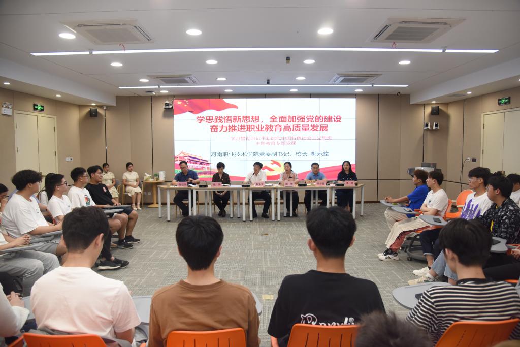 6月13日下午,校长梅乐堂以《学思践悟新思想,全面加强党的建设,奋力推进职业教育高质量发展》为题,为教务处、文化旅游学院、国际教育学院全体师生党员讲授主题教育专题党课。党委副书记、纪委书记田华,宣传部部长杨华参加活动。