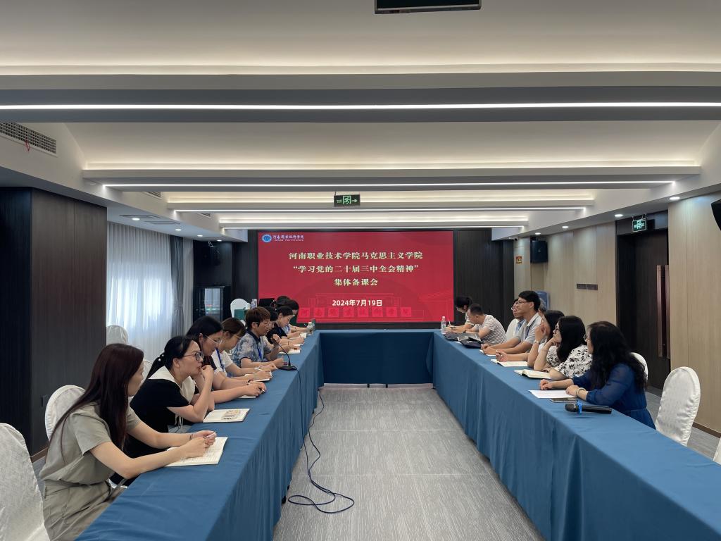 梁杰表示,学习宣传贯彻党的二十届三中全会精神是马克思主义学院当前和今后一个时期的重要任务,并就学习贯彻党的二十届三中全会精神,推进全会精神融入思政课教学,安排部署了相关专题的备课。她要求全体思政课教师要深刻学习领悟党的二十届三中全会精神,学深悟透,把握新观点、新思想、新论断,准确掌握精髓要义;要融会贯通,将二十届三中全会精神有机融入各门思政课程,落实好思政课立德树人根本任务,引导广大青年学生自觉投入到建设社会主义现代化强国、实现中华民族伟大复兴的奋斗之中;要率先行动,组建骨干教师成立党的二十届三中全会精神宣讲团,通过多层面宣传,不断将党的创新理论向纵深推进。